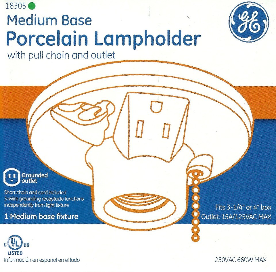 GE Porcelain Light Bulb LAMPHOLDER Fixture Keyless Pull chain OR Grounded Outlet