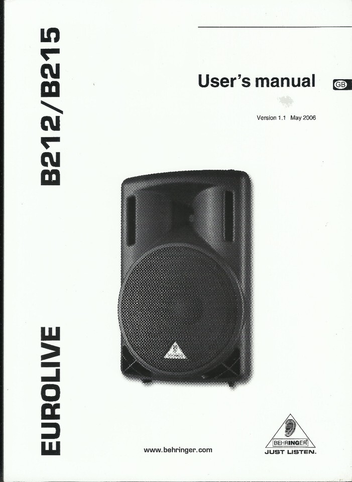 Behringer Owners Manual for B212/B215 Eurolive Speakers Ver 1.1 |