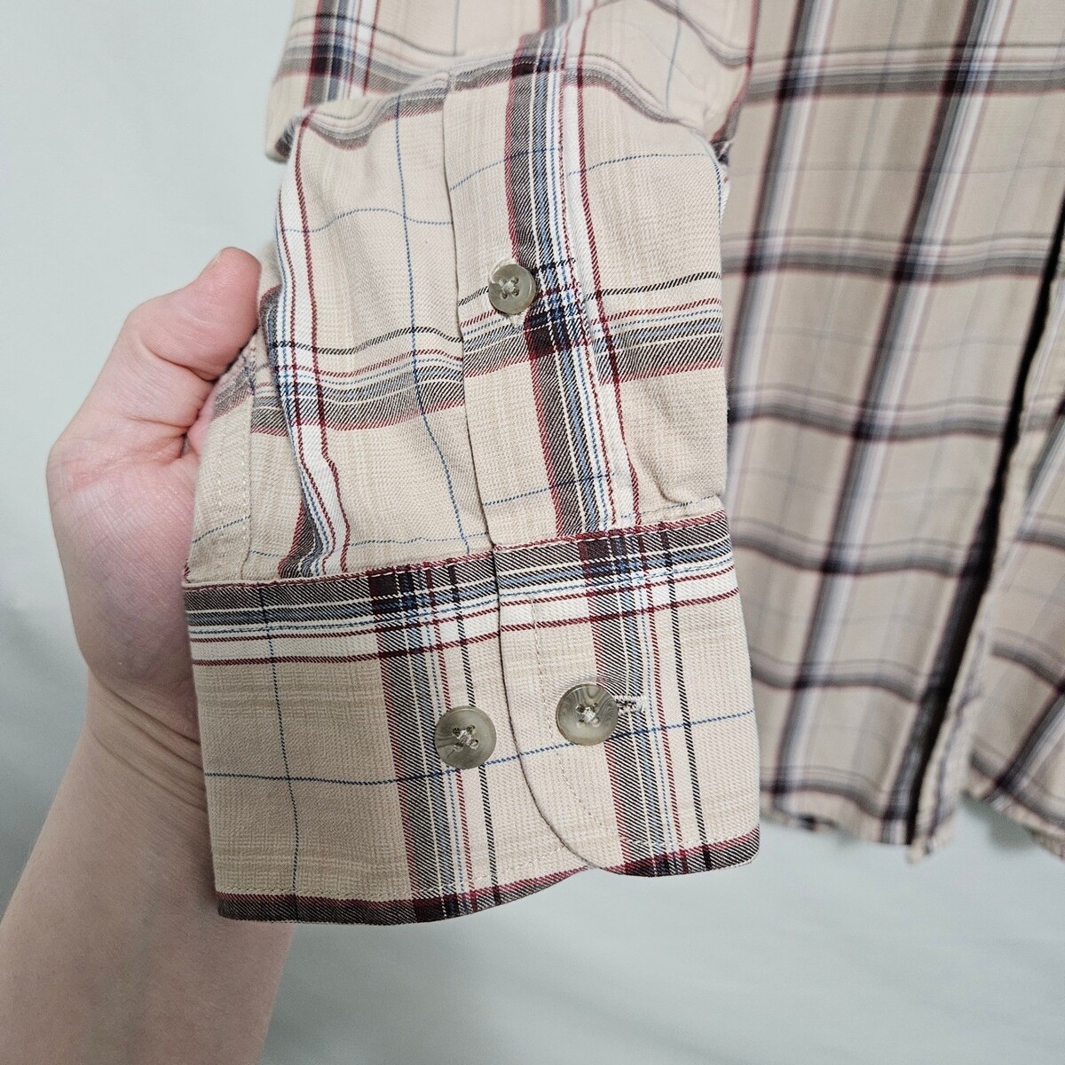 Wrangler George Straight Cowboy Cut Long Sleeve Brown Tan Plaid Button Shirt XL
