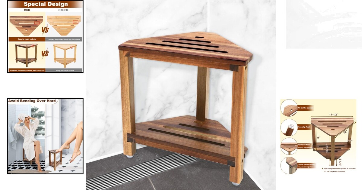 Non-Slip Triangular Shower Stool - Acacia Wood Foot Rest for Comfort & Safety
