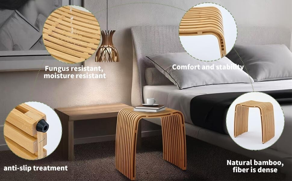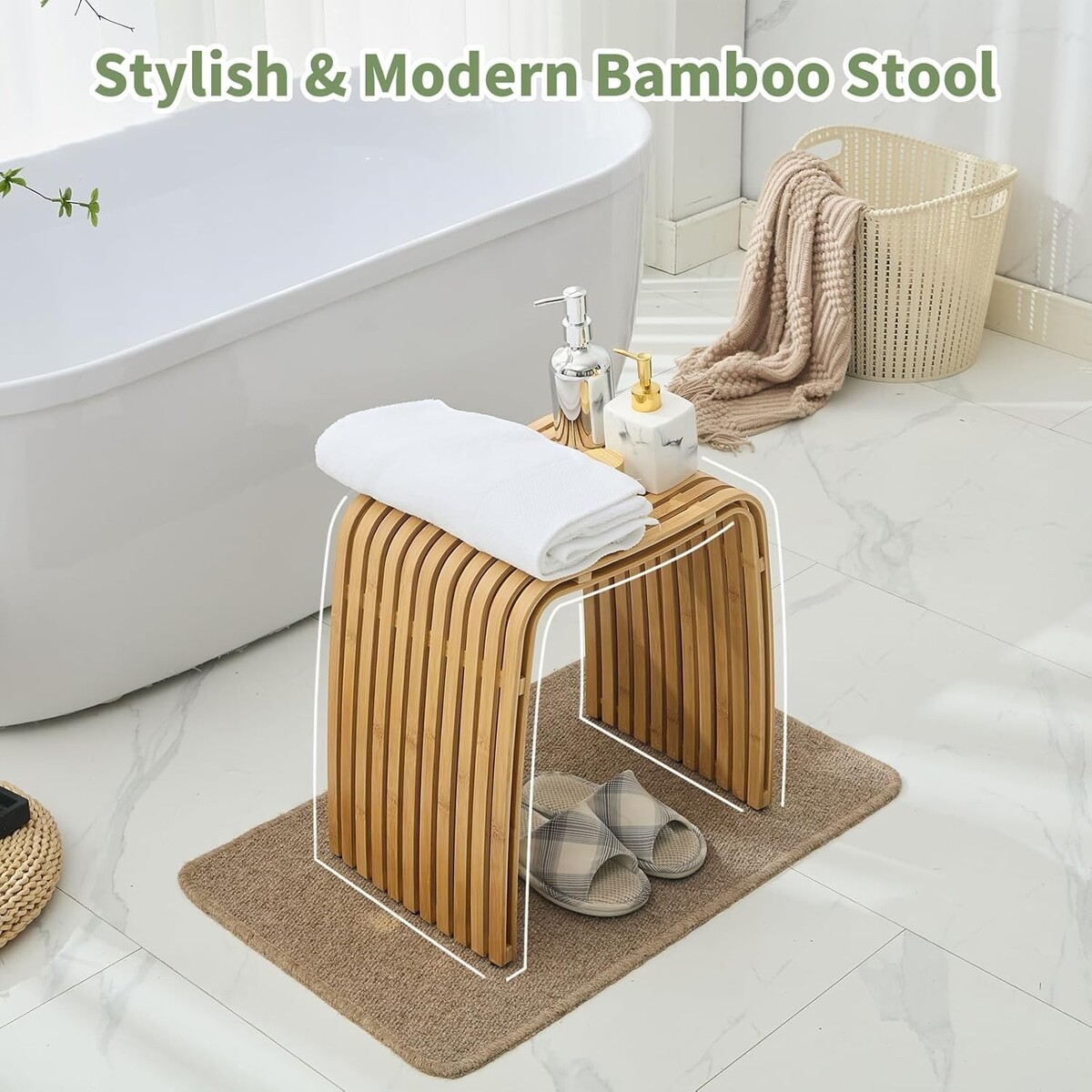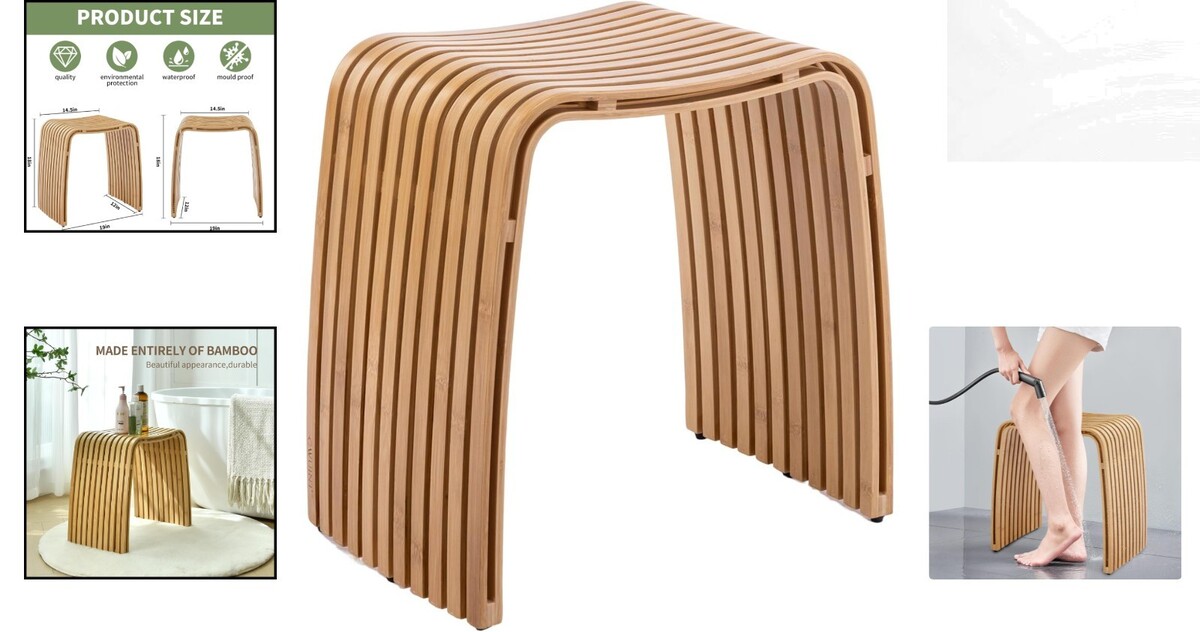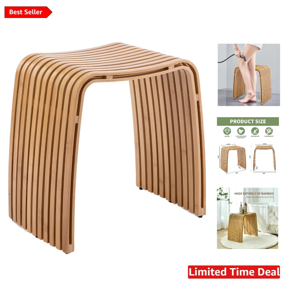 Chic Bamboo Shower and Spa Stool - Waterproof with Non-Slip Safety Feature