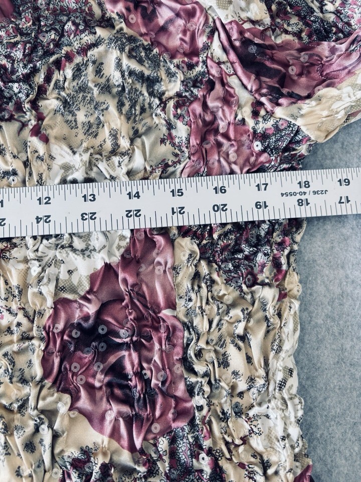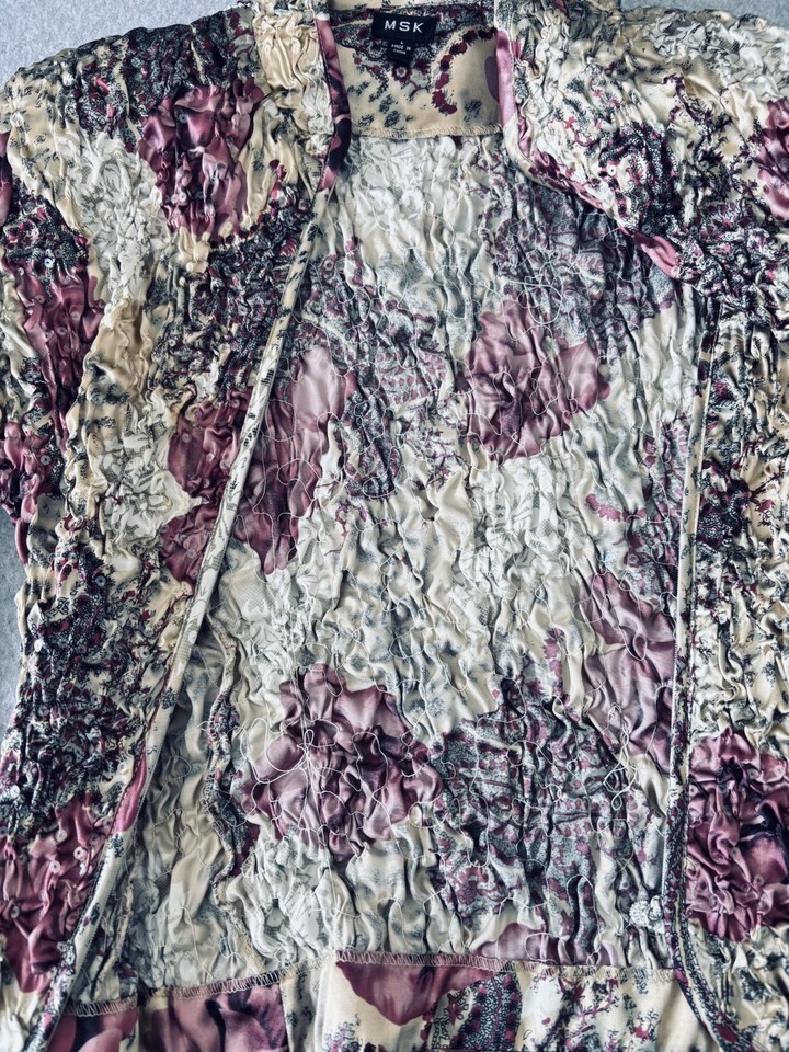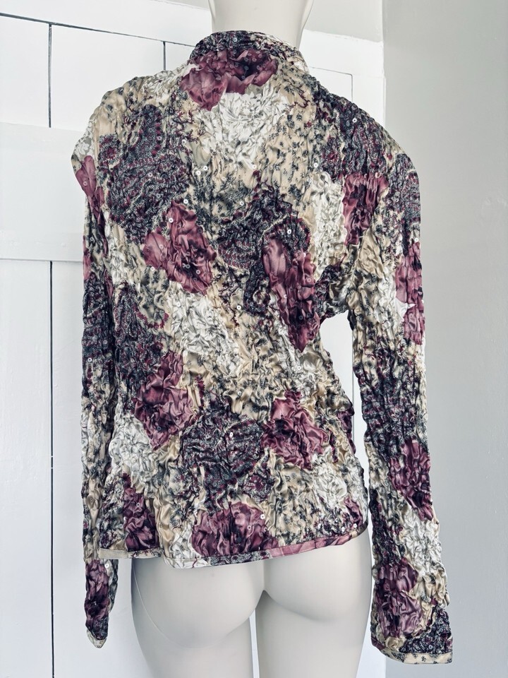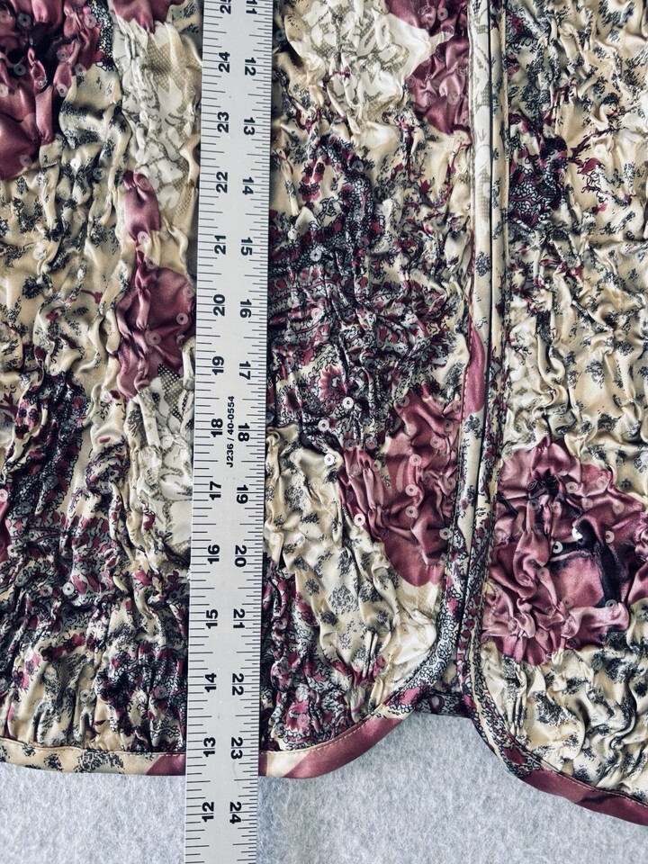 Vintage MSK Evening Jacket Womens L Floral Sequin Full Zip Crinkle Top Jacket