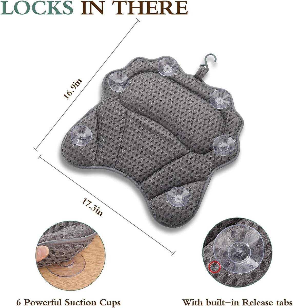 Powerful Suction Cups: Equipped with six robust suction cups to securely keep your pillow in place, ensuring stability as you soak.