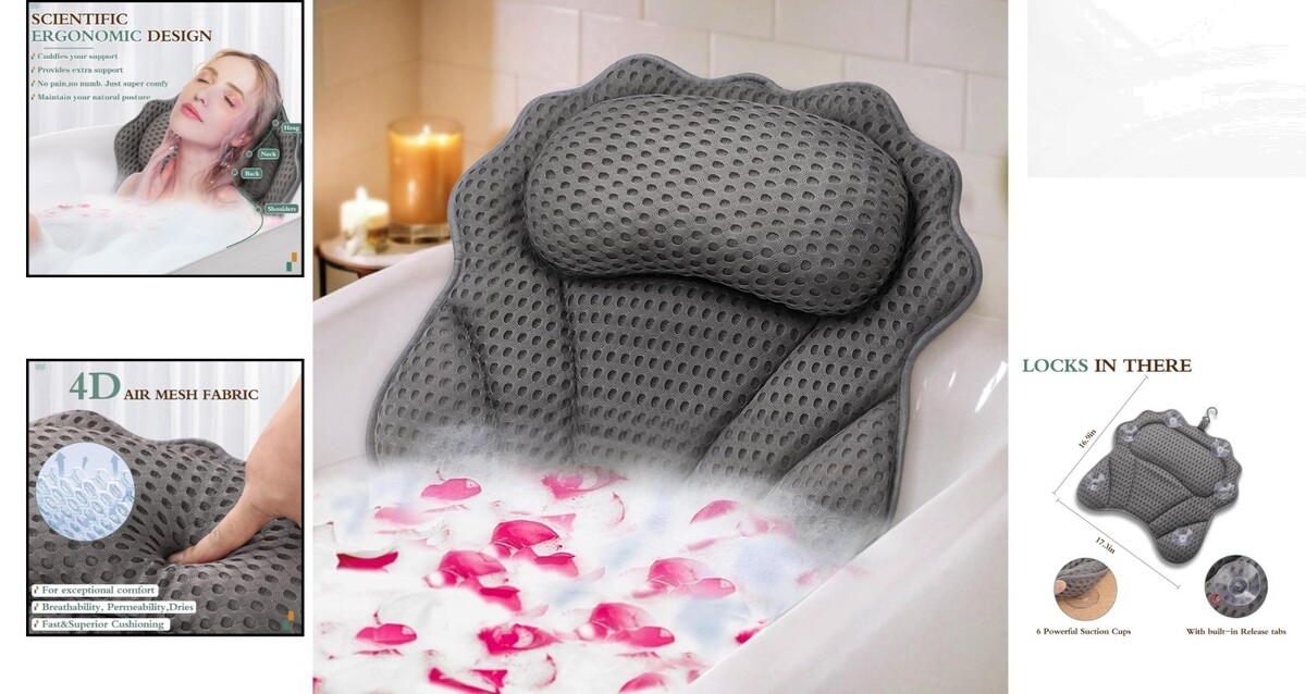Comfortable Bath Pillow with Head, Neck, and Shoulder Support - Ideal Gift