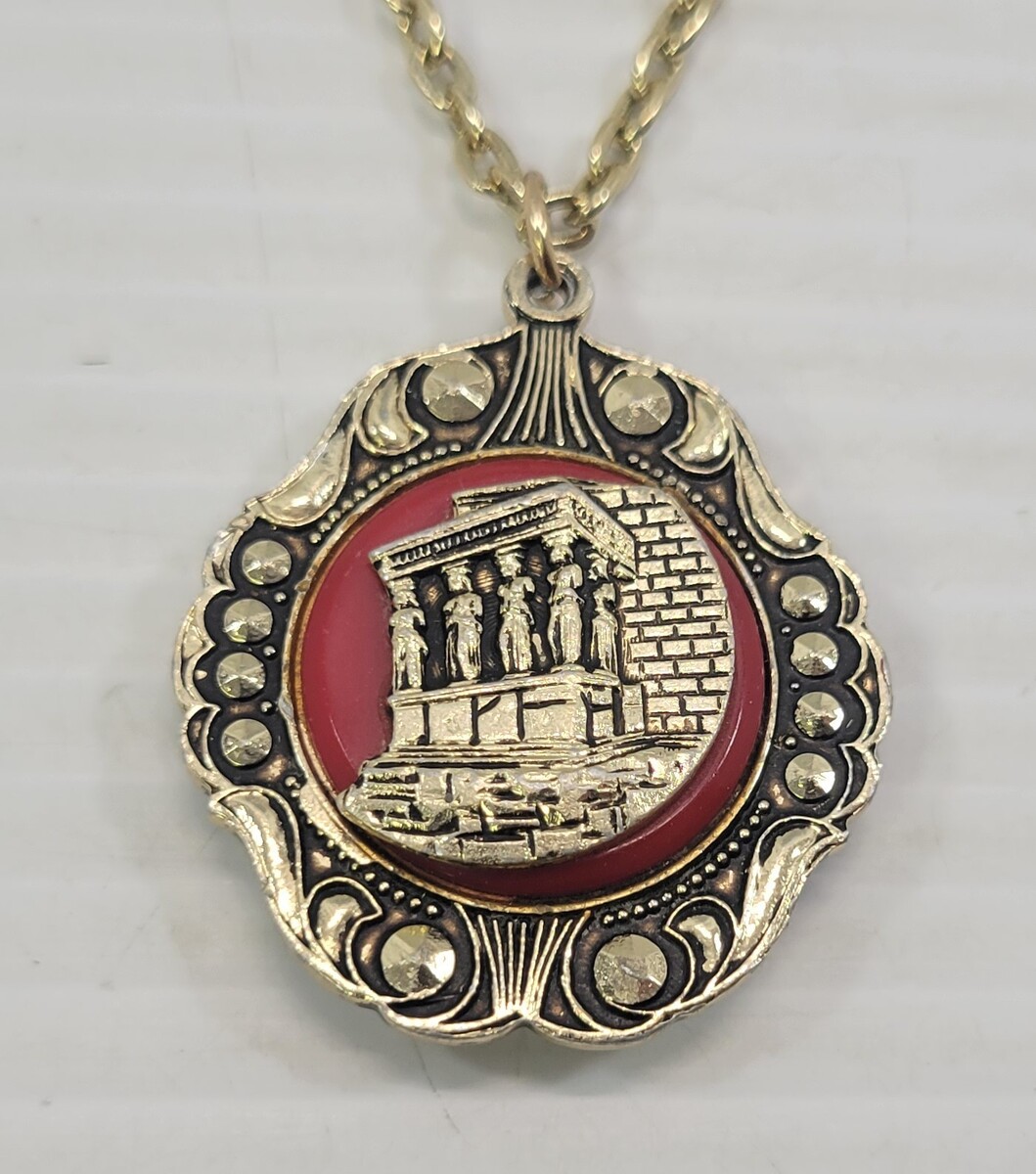 e5) Porch of Caryatids Greece Greek Soldier Souvenir Plastic Medal Chain Pendant