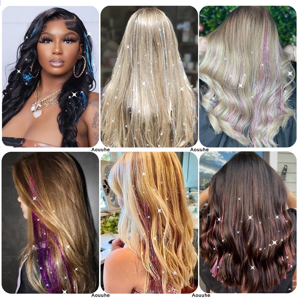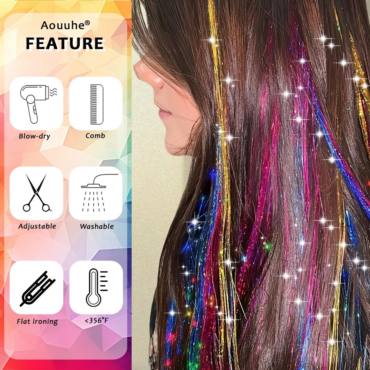 Quality Material, long-Lasting: High quality polyester fiber hair tinsel, heat-resistant, durable material maintains its sparkle and shine through multiple washes and styling sessions