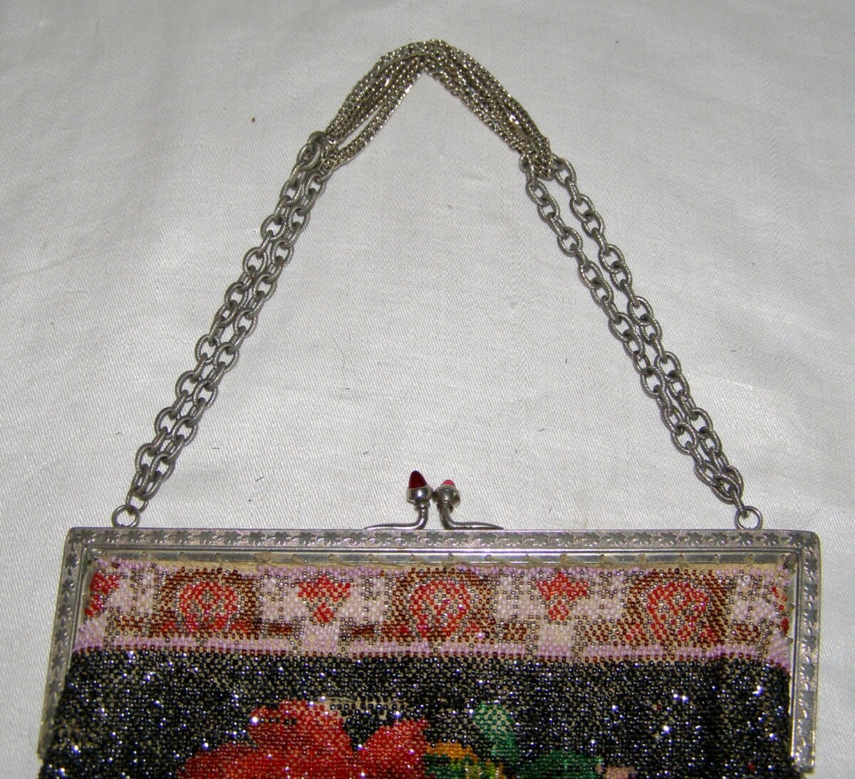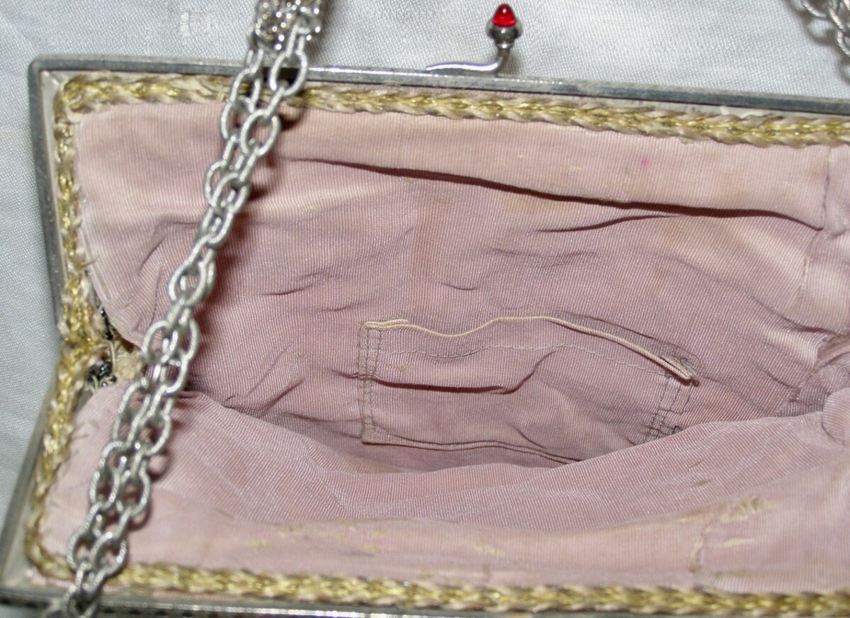 CONDITION: In Good Used Condition, with some wear to the fabric lining, some loose threads in the beadwork, light bead losses and replaced chain handle. Please see photographs.