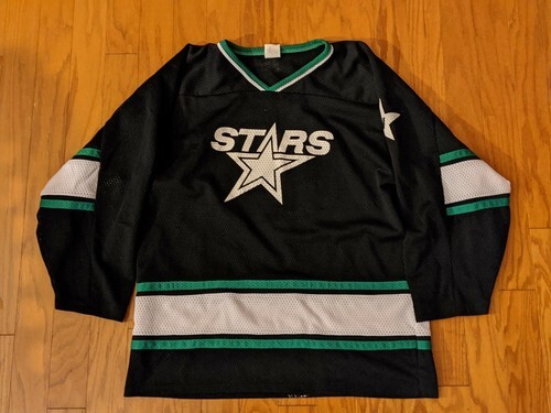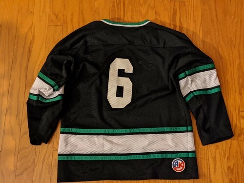 A la venta hay un Vintage Minnesota North Stars #6 usado 100% poliester Camiseta de hockey fabricada por Athletic Knit en los años 90. La camiseta es de talla grande y tiene graficos de vinilo. Dimensiones: axila a axila - 26" hombro a puño - 20" cuello hasta el dobladillo - 30"