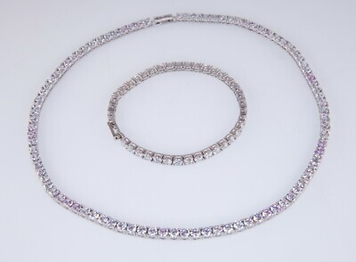 26.00ct T.W.Zircone Tennis Collier Bracelet Ensemble En Plaque Rhodium Argent