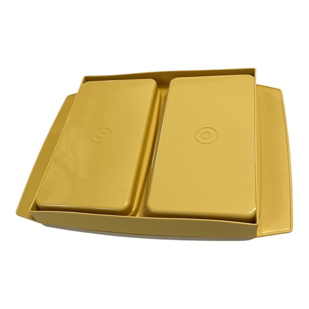Vtg Tupperware Deviled Egg Carrier – Mustard Yellow 3-Pc Set – 2 Trays + Lid – 1