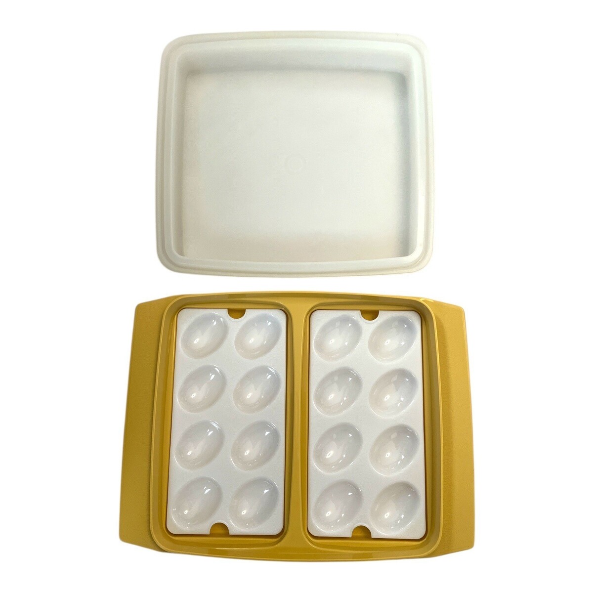 Vtg Tupperware Deviled Egg Carrier ? Mustard Yellow 3-Pc Set ? 2 Trays + Lid ? 12x10x3 ? 70s/80s