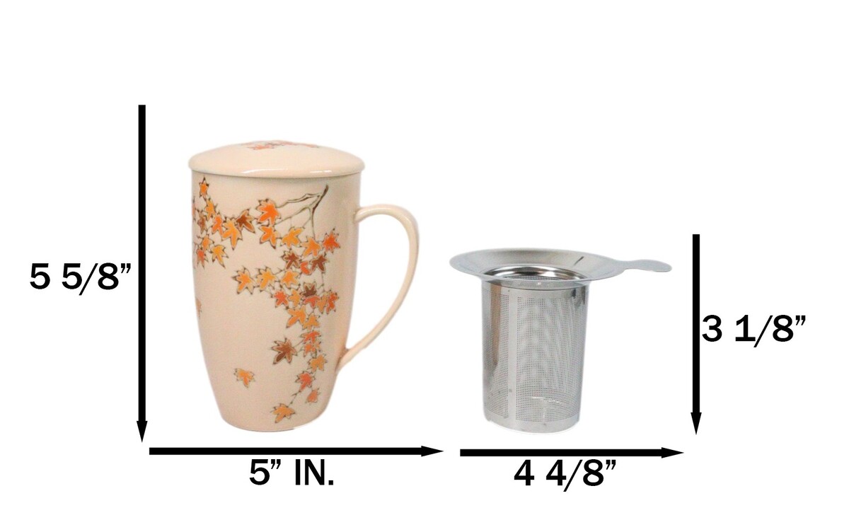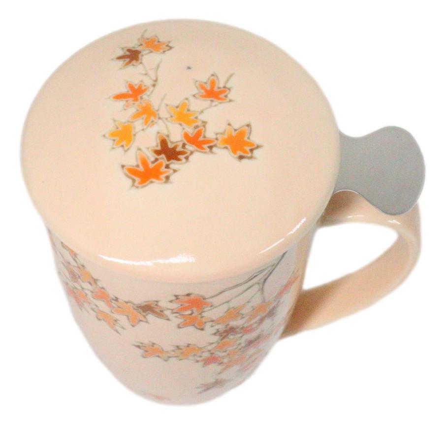 Momiji Maple Leaves 15oz Porcelain Tea Mug With Lid Stainless Steel Infuser