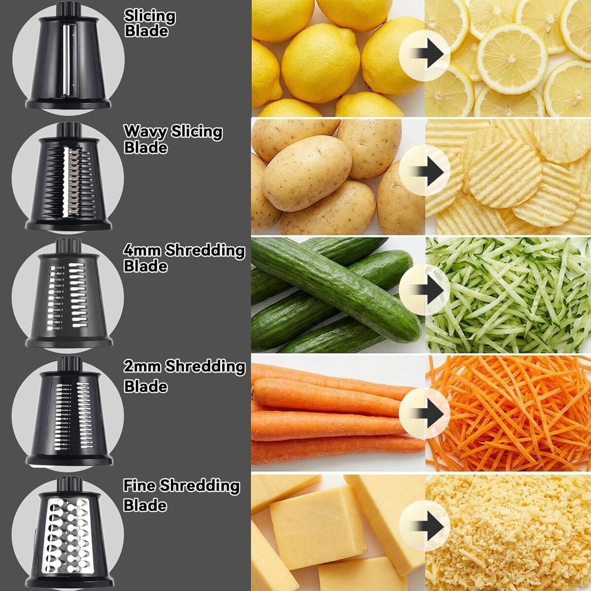 With a simple hand-crank mechanism, our rotary grater makes it easy to slice, shred, and grind. switch between different blades for versatile tasks.