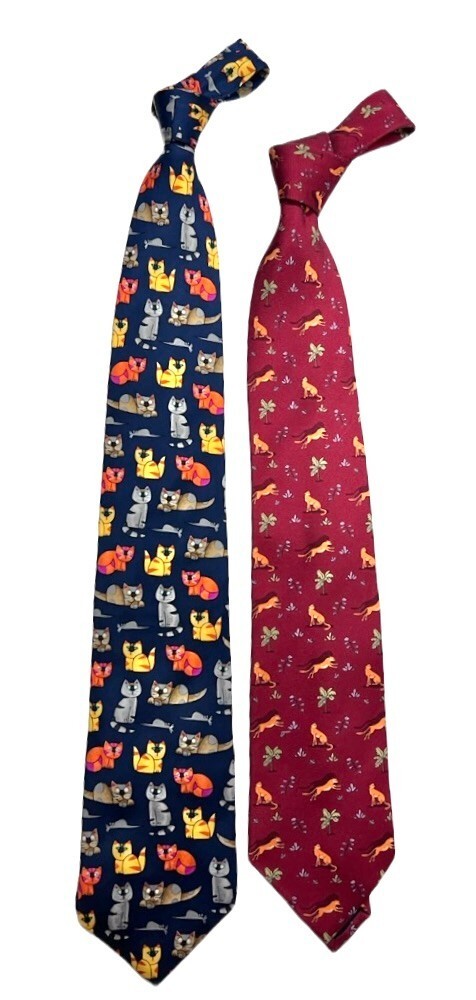 VTG Lederer Alynn Cat necktie + MAUS & HOFFMAN Mens Necktie Sole Mare 100% Silk