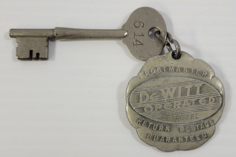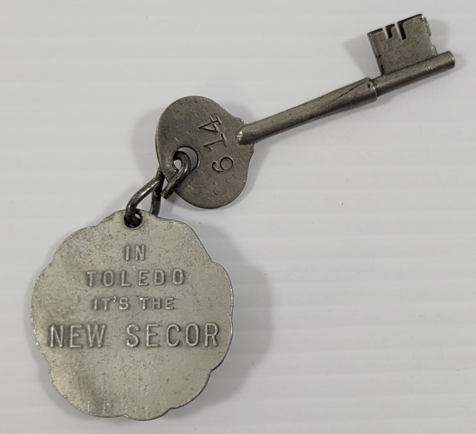 *B52) Vintage Secor Hotel Toledo Ohio Skeleton Room # 614 Key Metal Fob