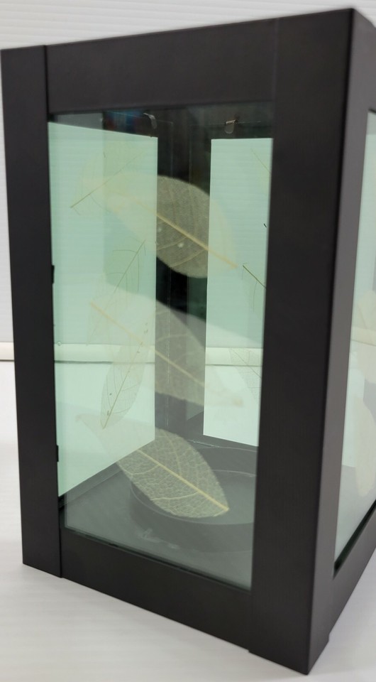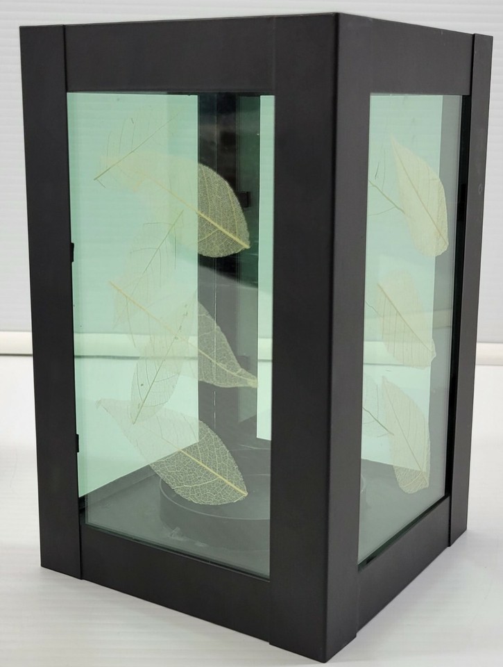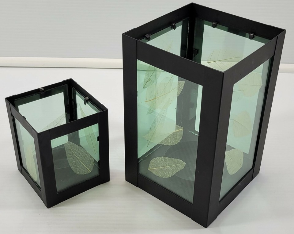 2 Black Lantern Metal Leaf Tea Pillar Candle Holder Cube Glass Boxes
