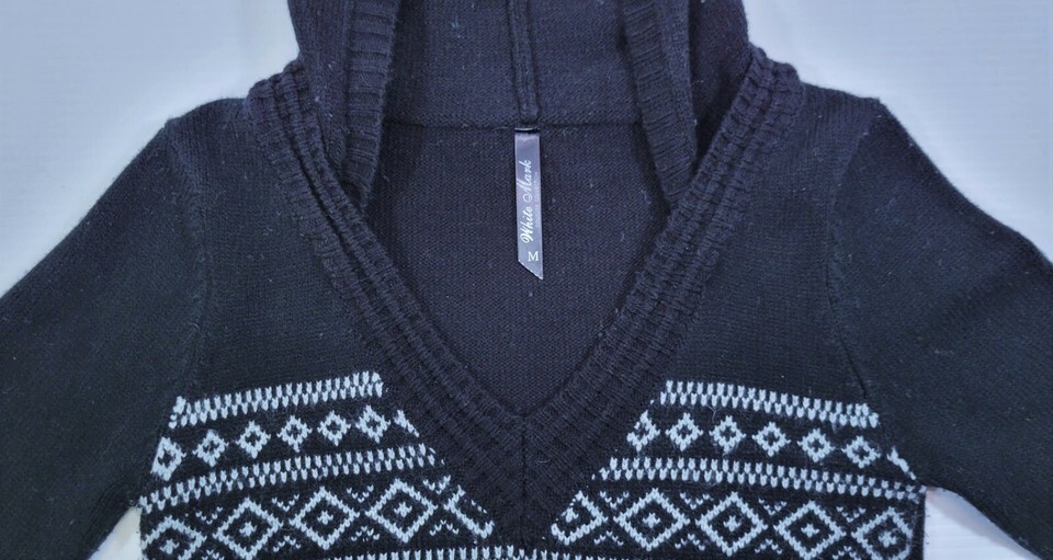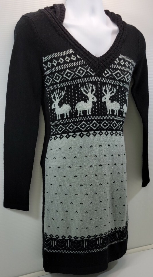MM) White Mark Couture Collection Women Medium Black Christmas Reindeer Sweater