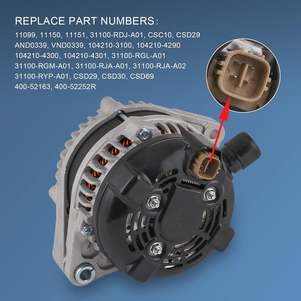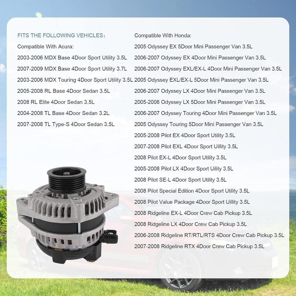 Alternator 130 Amp Compatible with Honda Odyssey Pilot Ridgeline Acura MDX RL TL