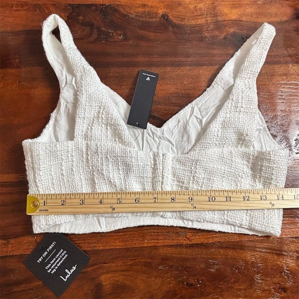 Lulus Women's Ivory Tweed Crop Top Blouse Size S V-Neck