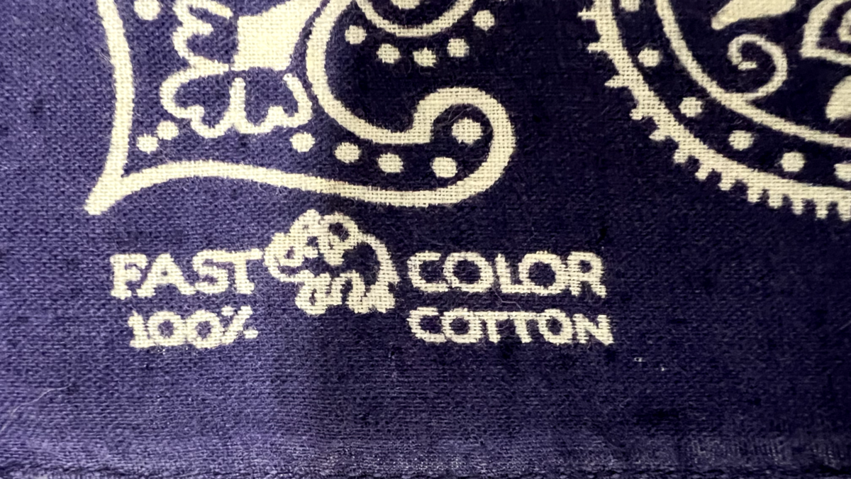 Made in the USA by Elephant Brand, known for ?Fast Color? cotton prints. Trunk-up logo indicates mid-century to late 20th century (c. 1960s?1980s).