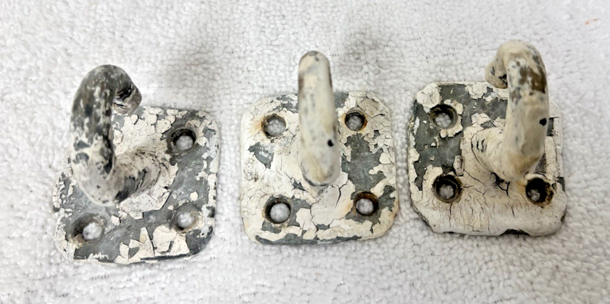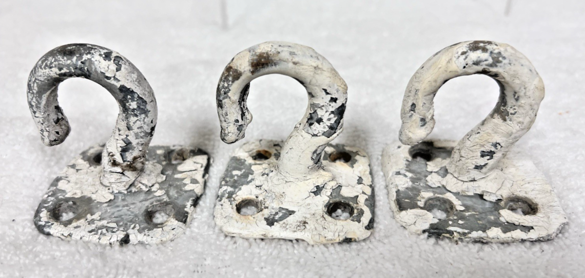 3 Vintage Distressed White Paint Cottage Core Shabby Farmhouse Wall Mount Hooks
