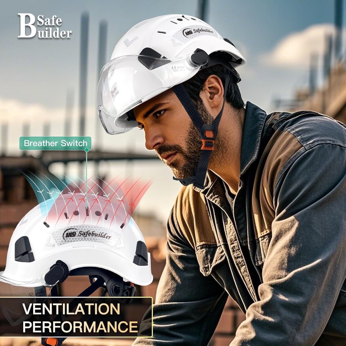 Adjustable ABS Safety Helmet with Visor - Certified ANSI Protection for Workers