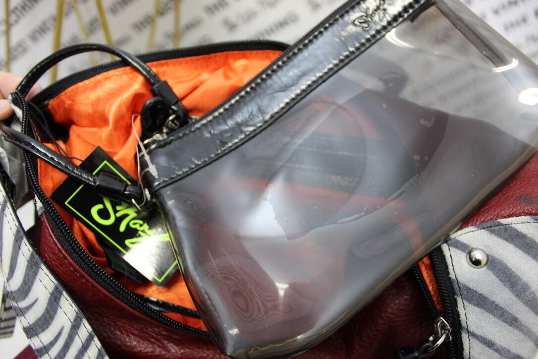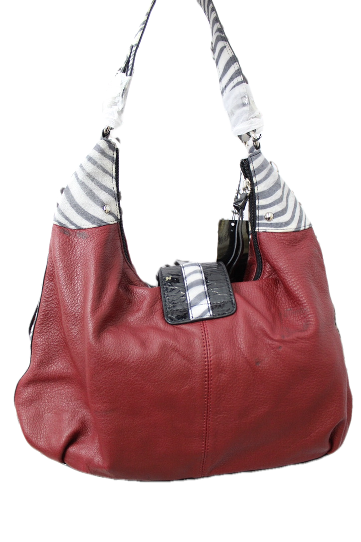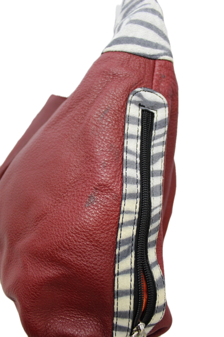 Sharif Studio Vintage Deep Red Zebra Vegan Tote Handbag Large Shoulder NWOT