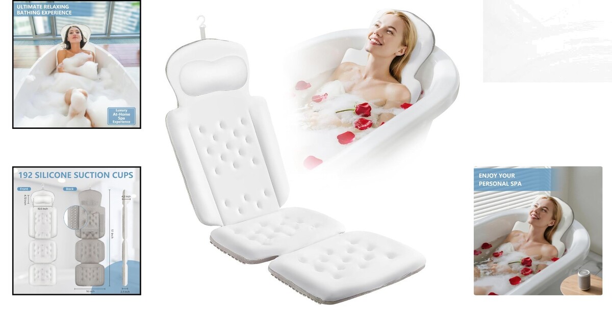 Luxury Bath Cushion with 192 Suction Cups - Ultimate Neck Back Support 51x16