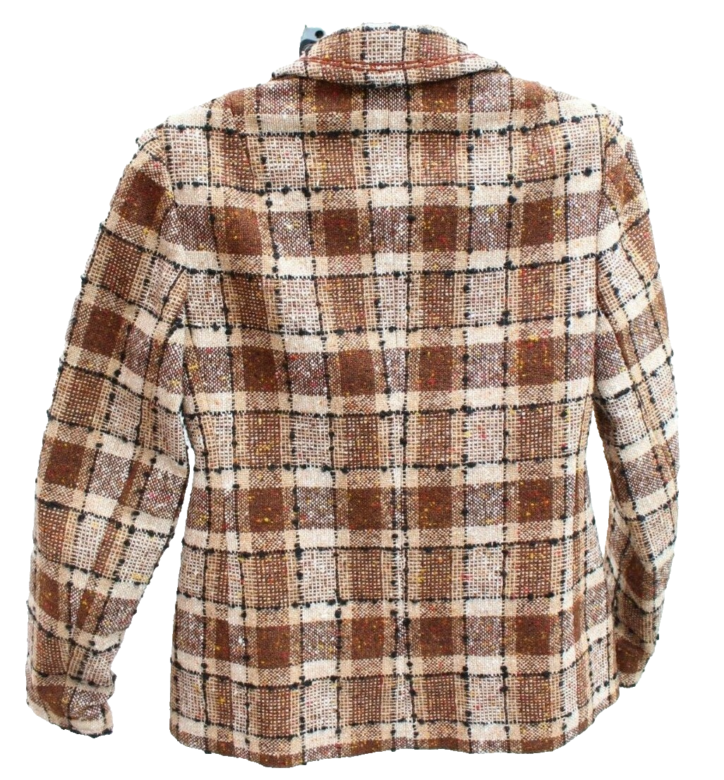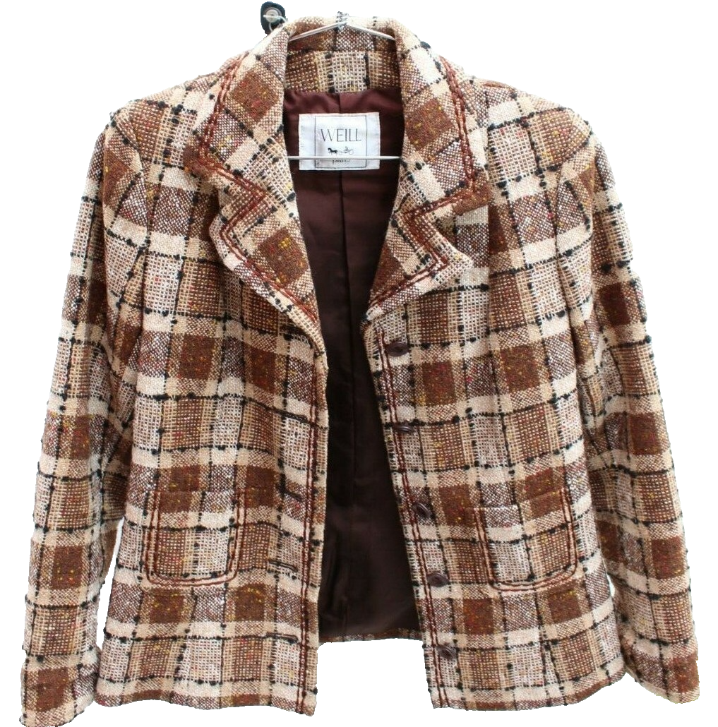 VTG Weill Paris Blazer Jacket Brown Tweed Plaid Wool Blend Fitted Coat Sz S/M