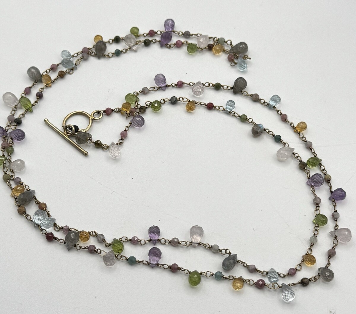 Vtg Satellite Necklace Gold Tone Chain Multicolor Crystals Dainty 36" Long Layer