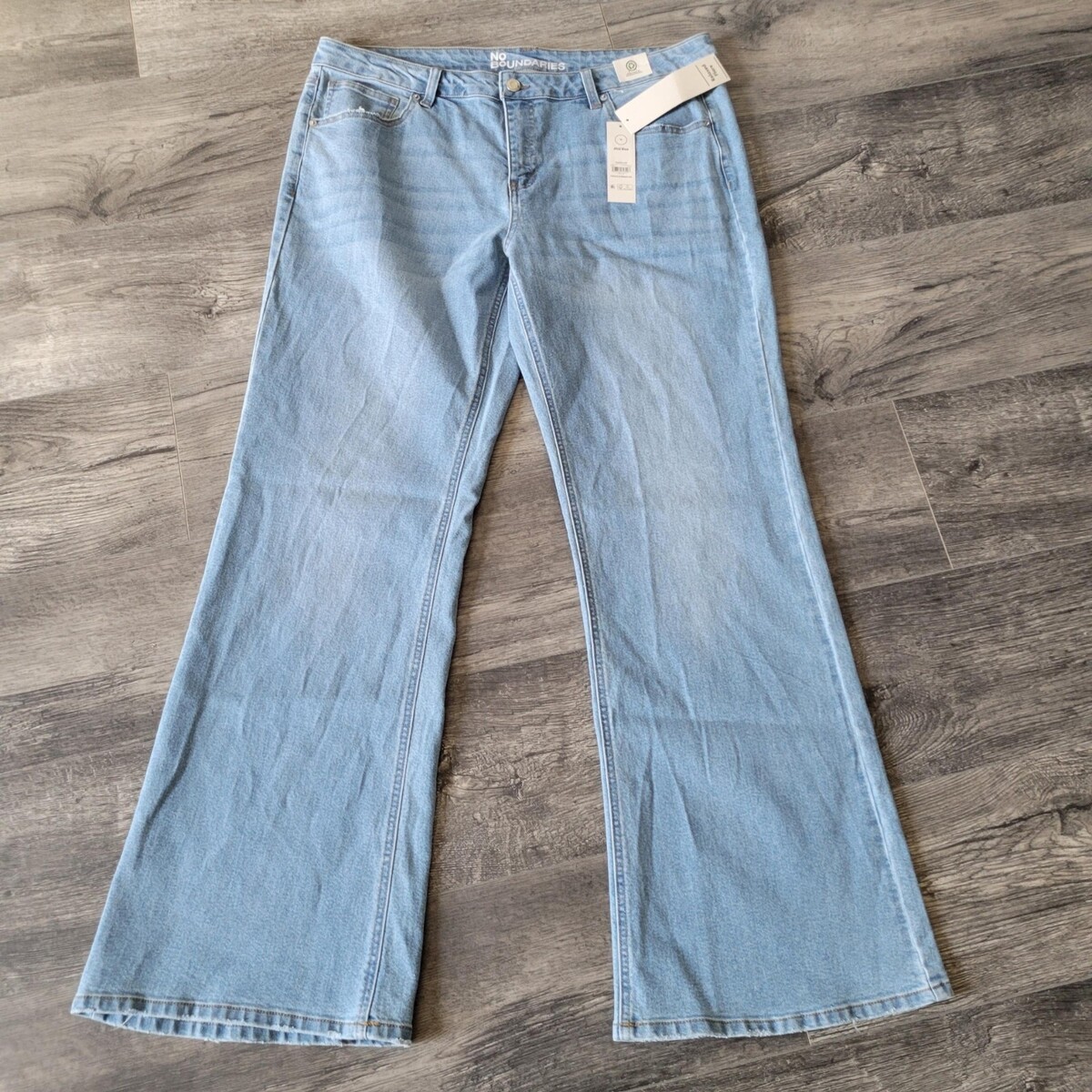 NO BOUNDARIES Jean Mid Rise Relax Flare Boot Cut NOBO Size 16 New NWT Light Wash