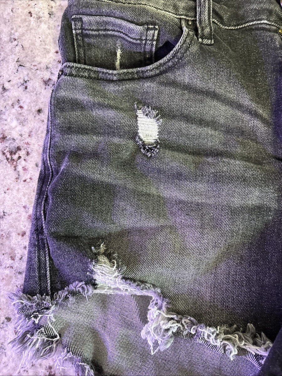 Risen Womens Black Stretch Pockets Distressed Denim Cut-Off Shorts Size Large