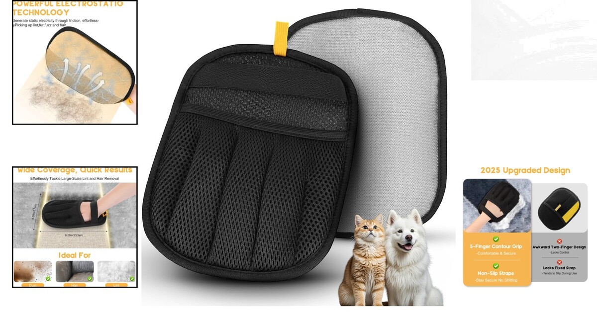 If you are a pet owner, you know the struggle of keeping your home fur-free. The Magic Brush Pet Hair Remover Gloves are here to transform your cleaning routine. With their unique 5-finger design, you can effortlessly glide over any fabric, trapping pet hair, lint, and dust in one swift motion. No more bulky, ineffective tools - these gloves all the nooks and crannies, ensuring not a single strand is left behind.