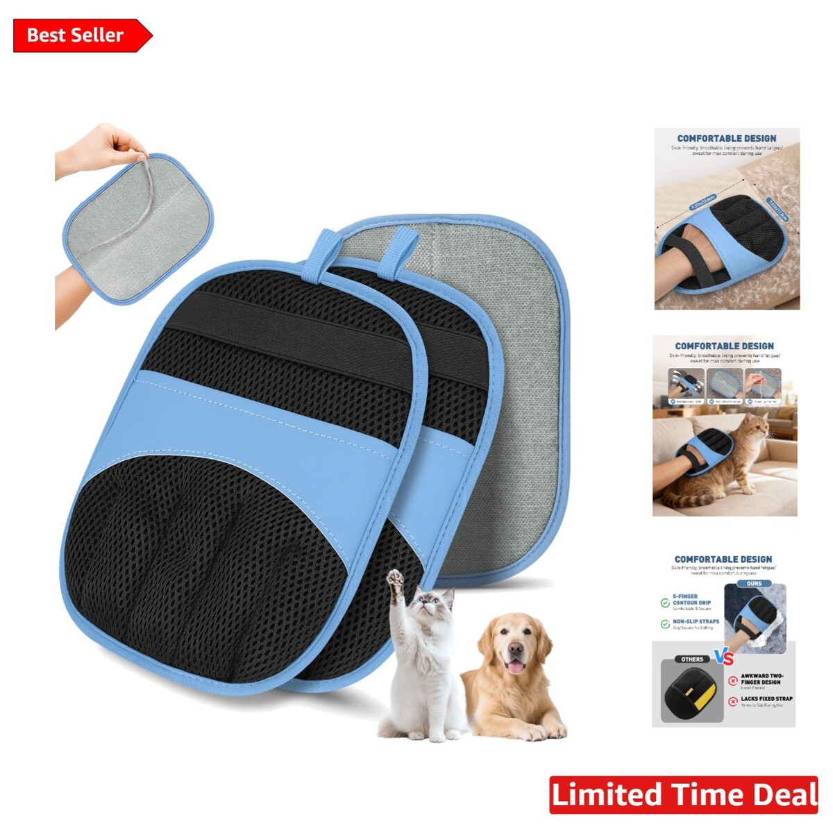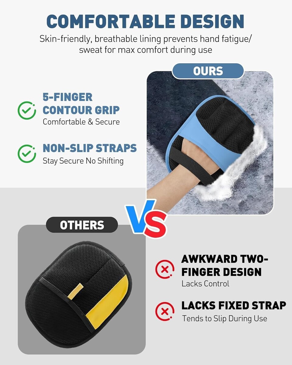 Comfortable Design: Features a skin-friendly, breathable inner lining that prevents hand fatigue and sweating during extended grooming or cleaning sessions.