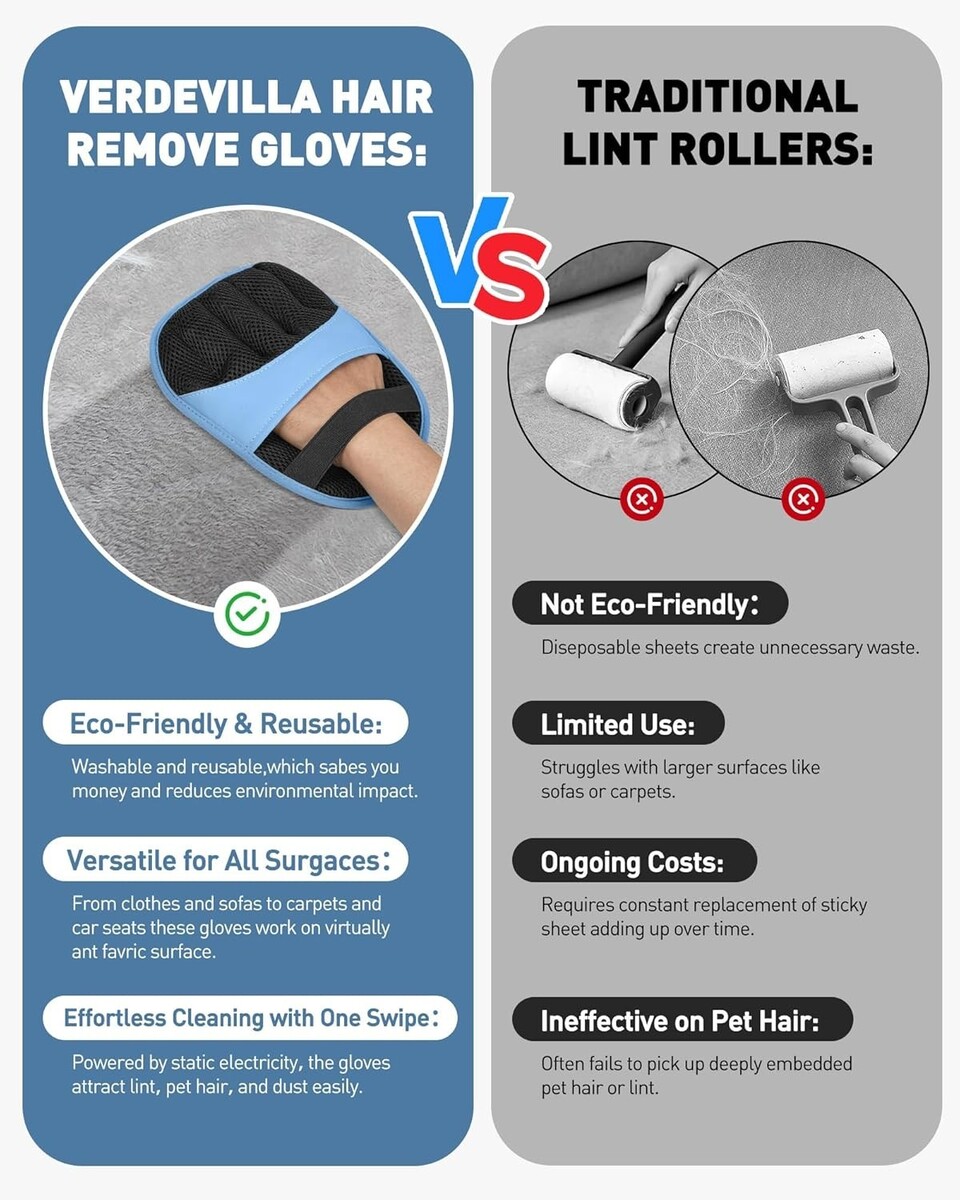 Versatile Hair Removal: Magic Brush Glove effectively removes pet hair from clothes, couches, car seats, and carpets with its powerful electrostatic design.