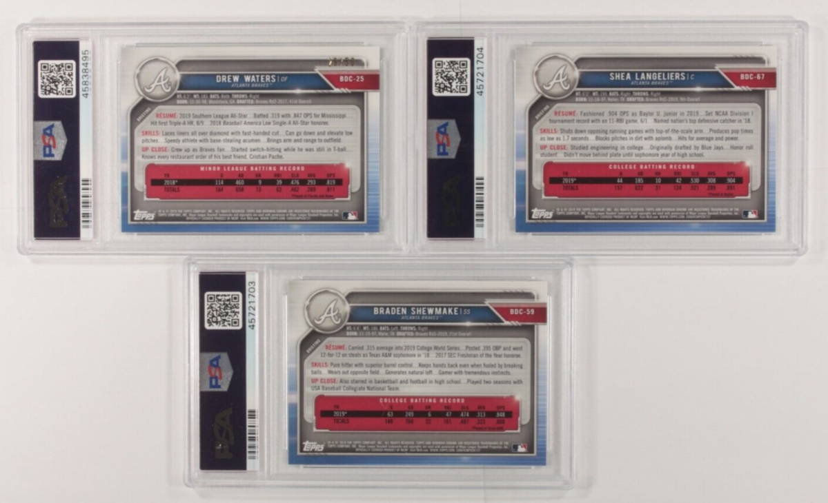 Lot De 3 Langeliers PSA 10 2019 Bowman Chrome Draft Sapphire, Shewmake, Waters