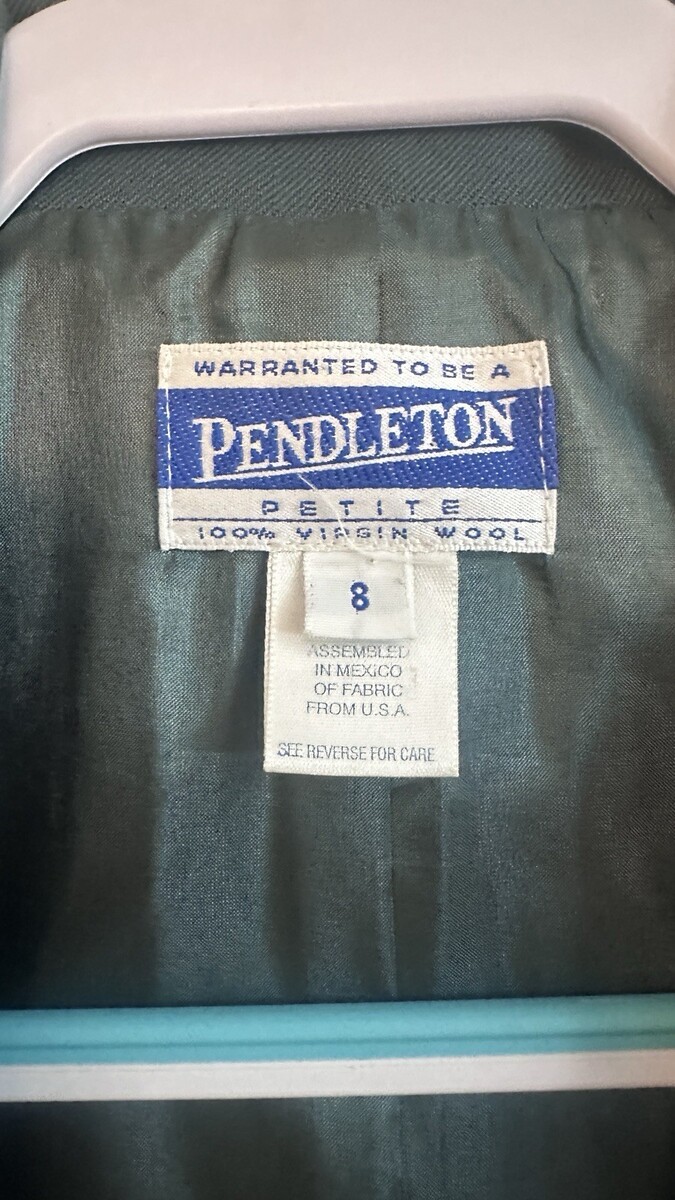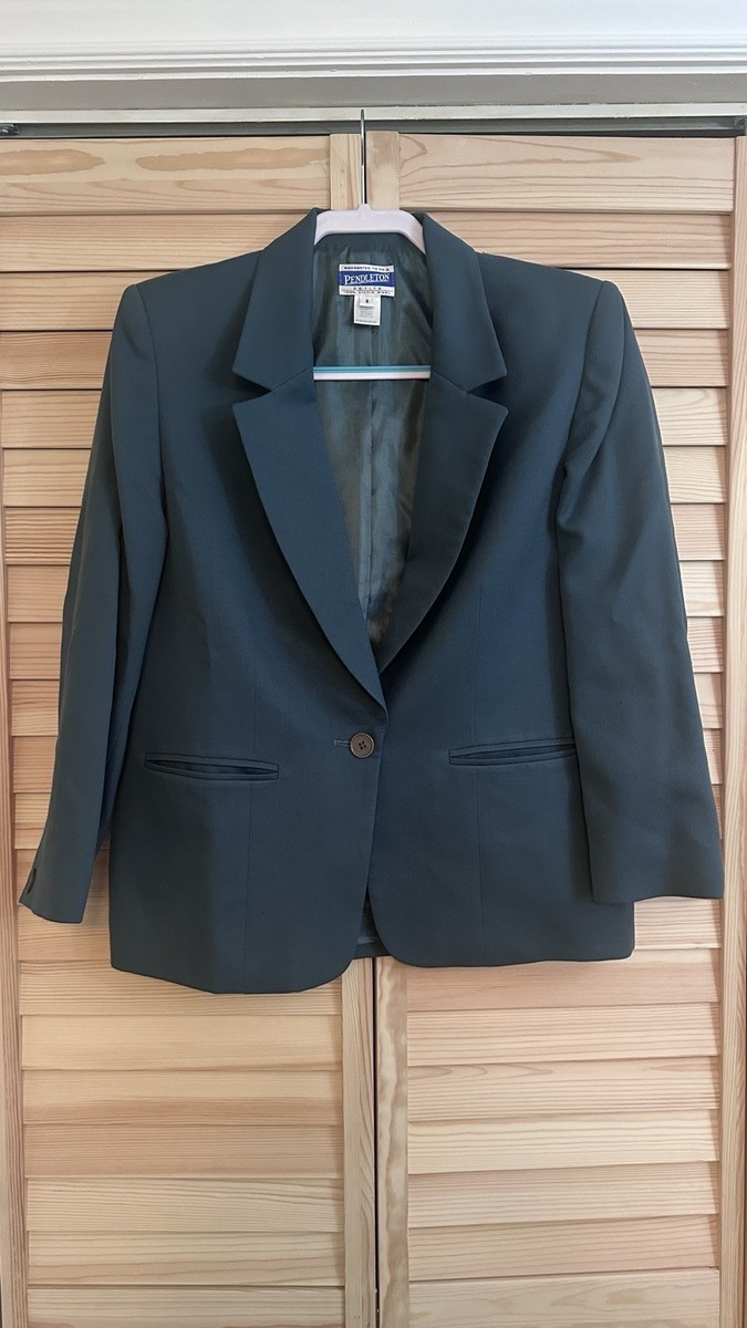 Vintage Pendleton Blazer 100% Virgin Wool Green One Button 8P Women
