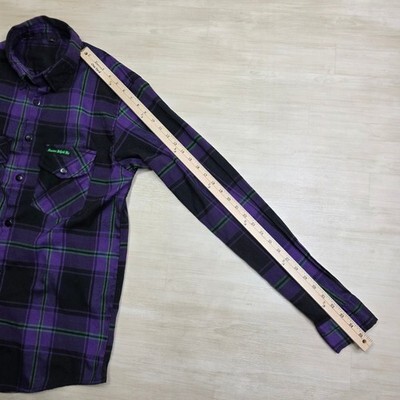 Demons Behind Me Purple Black Green Plaid Flannel Shirt Skull Patch Large Tall