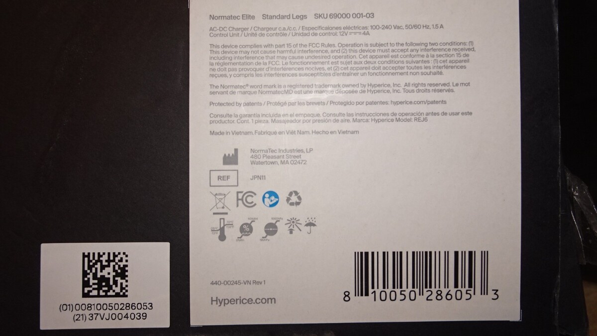 Normatec Elite Standard Legs Compression Boots Hyperice REJ6 Leg Sleeves Set
