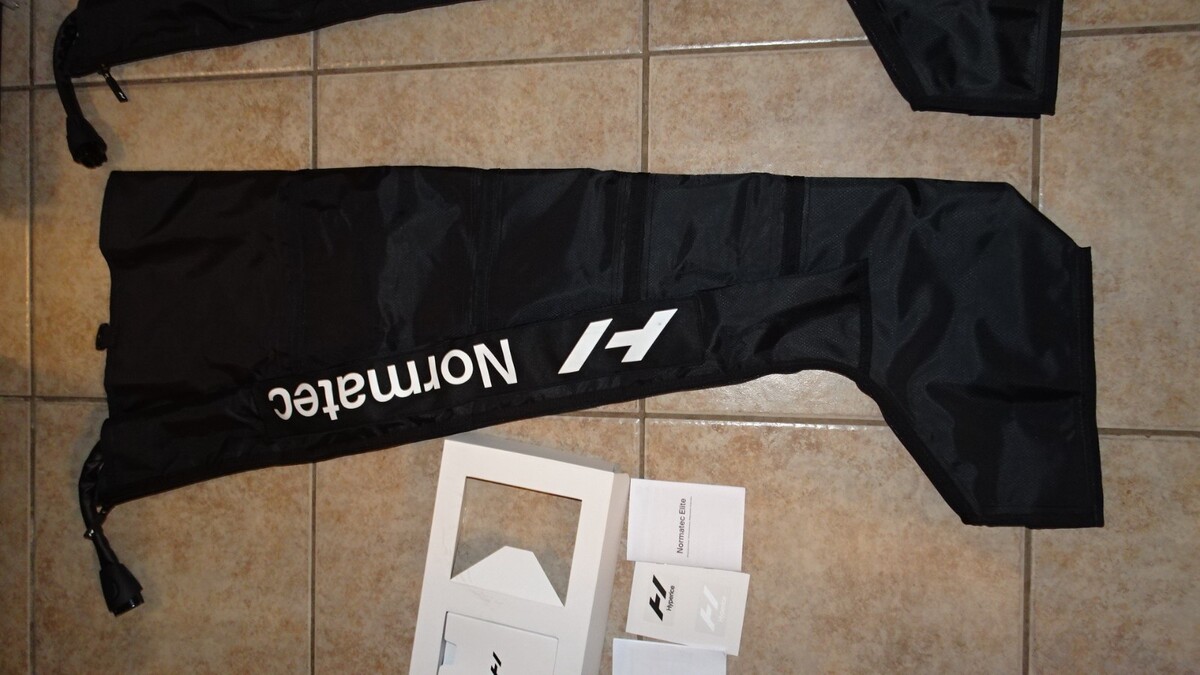 This is a Normatec Elite Standard Legs compression boot set by Hyperice.