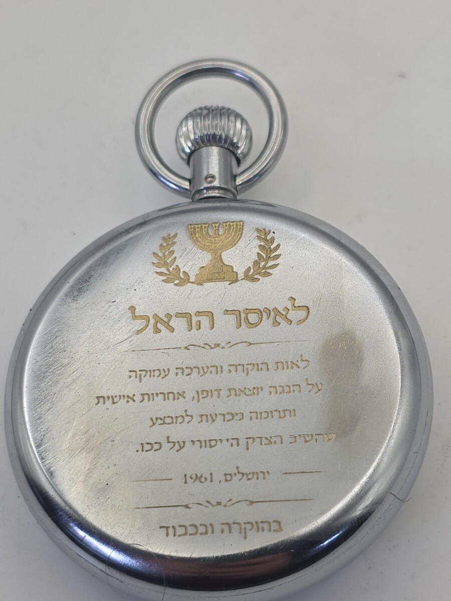 Vintage Jewish Judaica swiss Stopwatch Israel Hebrew Inscription Jerusalem 1961