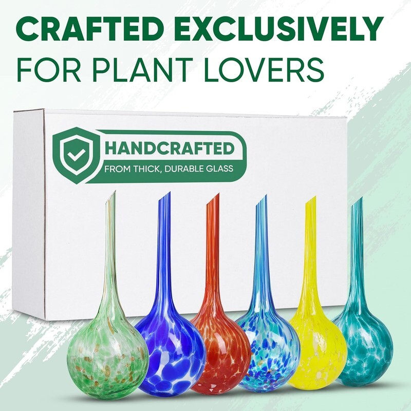 ????? ???????? ??????: Convenient plant watering bulbs for indoor and outdoor plants to save your valuable time; each self watering planter insert is handcrafted and made of glass, holds 100 ml of water; plant water globes allow you to monitor water release; ideal for most plants, outdoor succulents, cacti, plants that require less water, and hanging plants