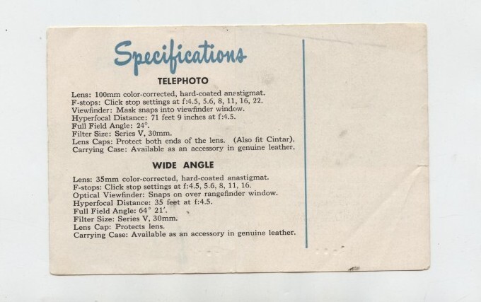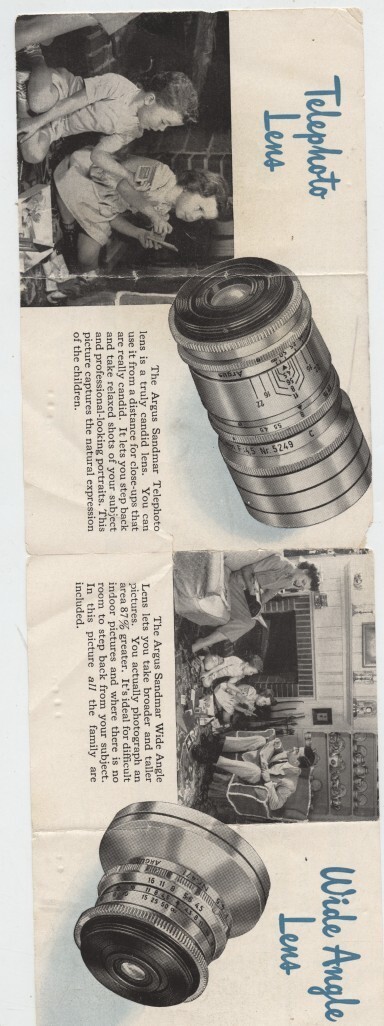 Argus C-3 Camera Accessary Lenses Brochure 1950's