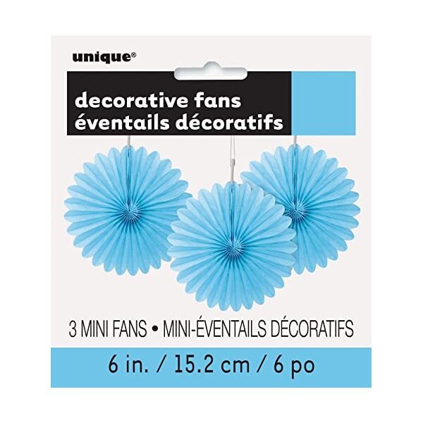 Mini Baby Blue Tissue Paper Fan Decorations, Pack of 4