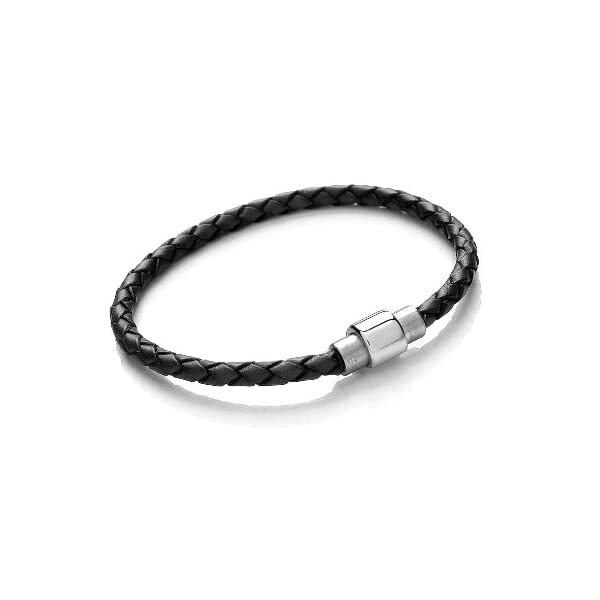 Tribal Steel Youth's 18cm Black Leather Bracelet with Magnetic Stainless Steel C