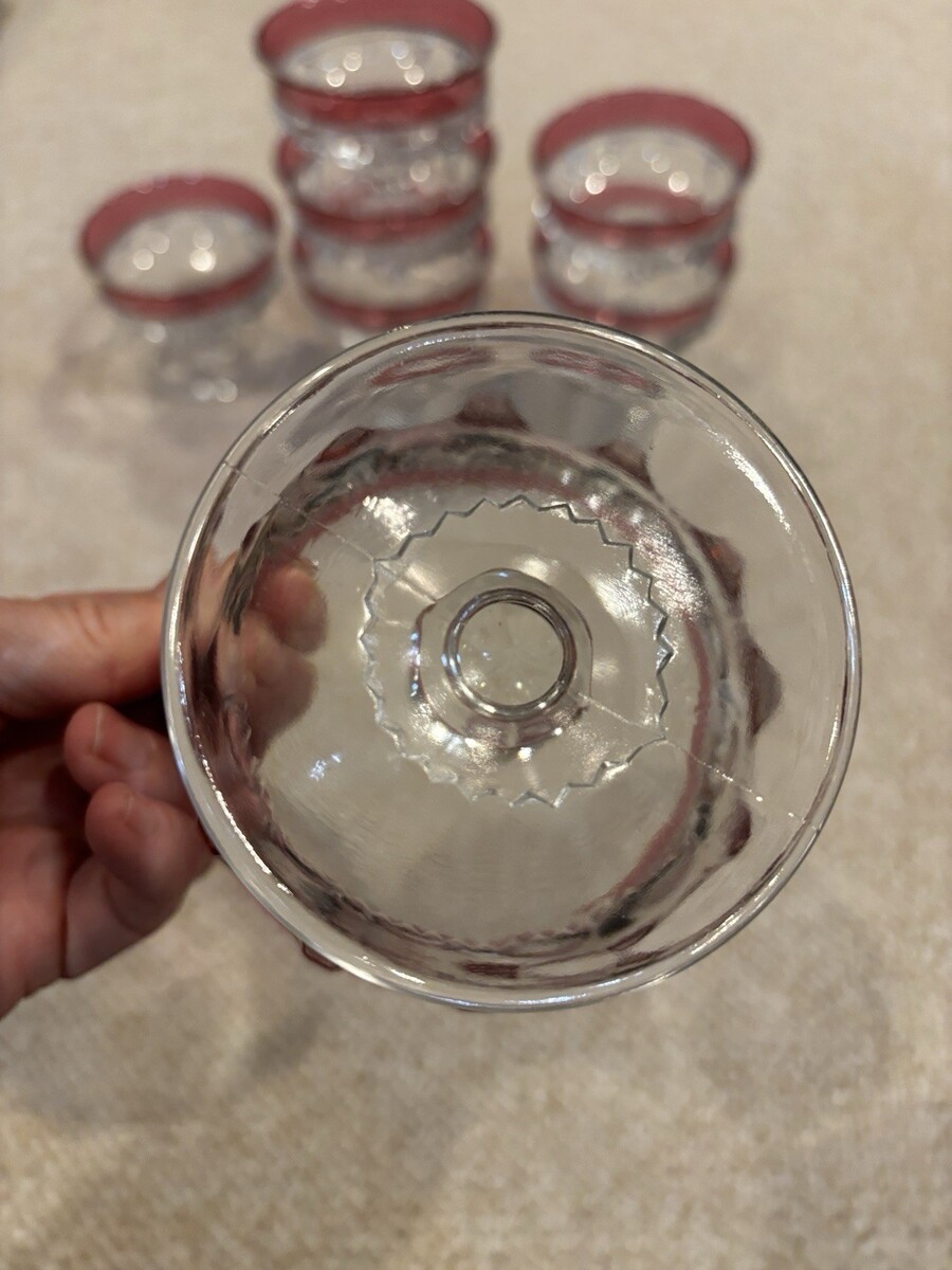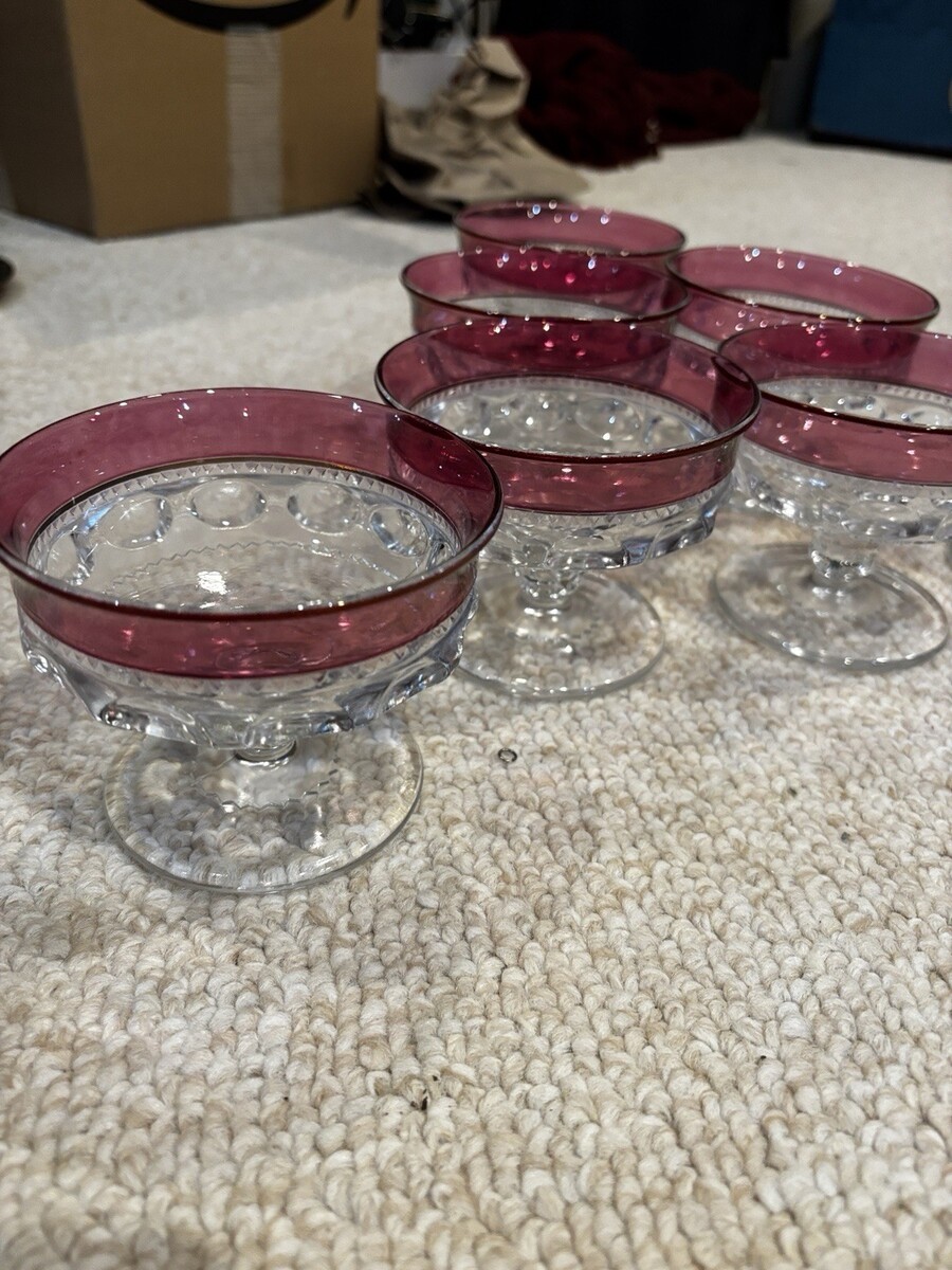 Tiffin Franciscan King's Crown Coupe Dessert Glasses Cranberry Set Of 7