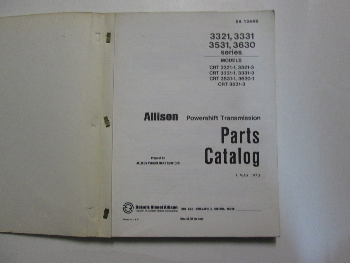 Detroit Diesel Allison Transmissions 3321, 3331, 3531, 3630 Series Parts Catalog Note: Parts Catalog is in ok condition. Any questions please contact us prior to purchasing. Thank You We will leave POSITIVE Feedback after we receive your payment. Please do not forget to give us POSITIVE Feedback and FIVE Stars on all of the Detailed Seller Ratings! If you are not satisfied with your shopping Experience, please contact us to get a solution before you decide to leave a NEUTRAL or a NEGATIVE Feedback, We will do our best to solve any problems for you as soon as possible. We will provide you with the BEST POSSIBLE service because the POSITIVE Feedback and FIVE Stars are what we are striving for. Please email me through "My Messages" or "Ask Seller Questions" if you have any question about our