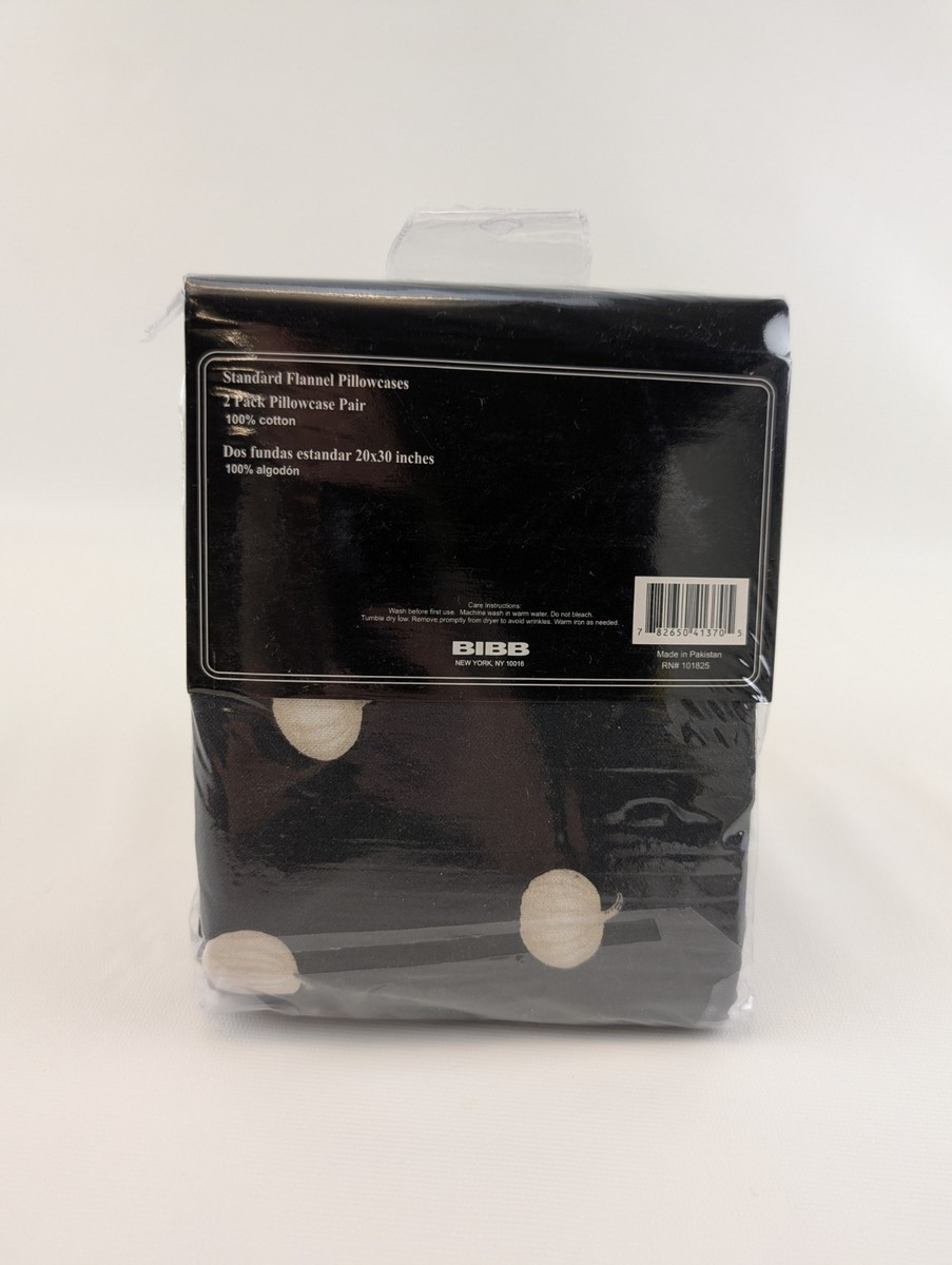 Bibb Home Flannel Pillowcases 2 Pack 20x30 Black White Pumpkin Print 100% Cotton. Condition is New with tags. Shipped with Standard Shipping.