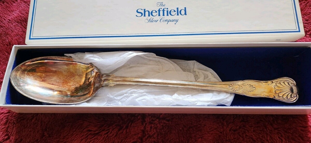 VTG Sheffield Silverplate Large Serving Spoon Italy Made In Box 13 Inch