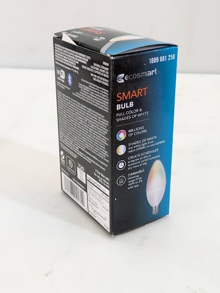 EcoSmart's 60-Watt Equivalent B11 Smart LED light bulbs are equipped with customizable light settings that can be controlled wirelessly via your existing network Wi-Fi or Bluetooth. No Hub is required to use Hubspace smart bulbs. Set up is quick and easy and only takes a few minutes. These Hubspace smart LED bulbs are controlled via Bluetooth and Wi-Fi. When the Wi-Fi is offline, you can still control the bulb via Bluetooth. Download the Hubspace smart home onto your Android or iOS device to get started. Use the app to simply control the LED bulbs or control the bulbs via your voice assistant, such as Alexa or Google Home. Each of these energy efficient Smart LED bulbs are dimmable via app and use only 5-Watt of energy to produce up to 500 Lumens, equivalent to a 60-Watt incandescent B11 light bulb. Equipped with tunable white technology, these smart LED bulbs can be set to any color temperature between 2200K (Warm White) and 6500K (Daylight Deluxe) so you can find the perfect color temperature for your space. These bulbs are also equipped with a full spectrum of colors to choose from millions of colors so you can create the perfect setting. Enjoy a Smart life starting with this Smart bulb. Equipped with E12 (candelabra) base.